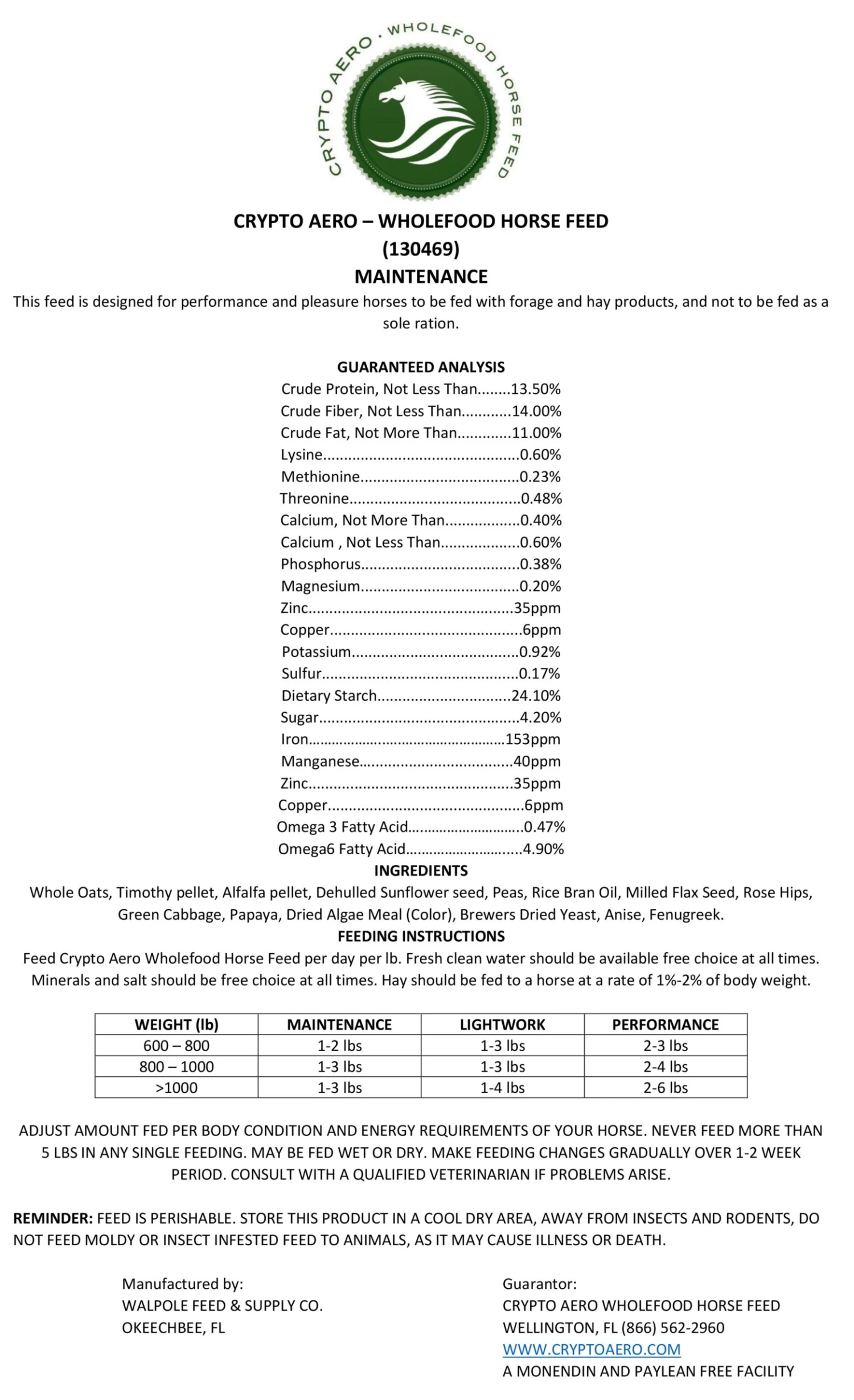 Please note, this feed is designed to be fed with forage/hay products and salt. It is not designed to be a sole ration. Each horse’s nutritional requirements are unique, so we recommend checking with your veterinarian or a resource like FeedXL to determine if this product meets all of your horse’s needs.
