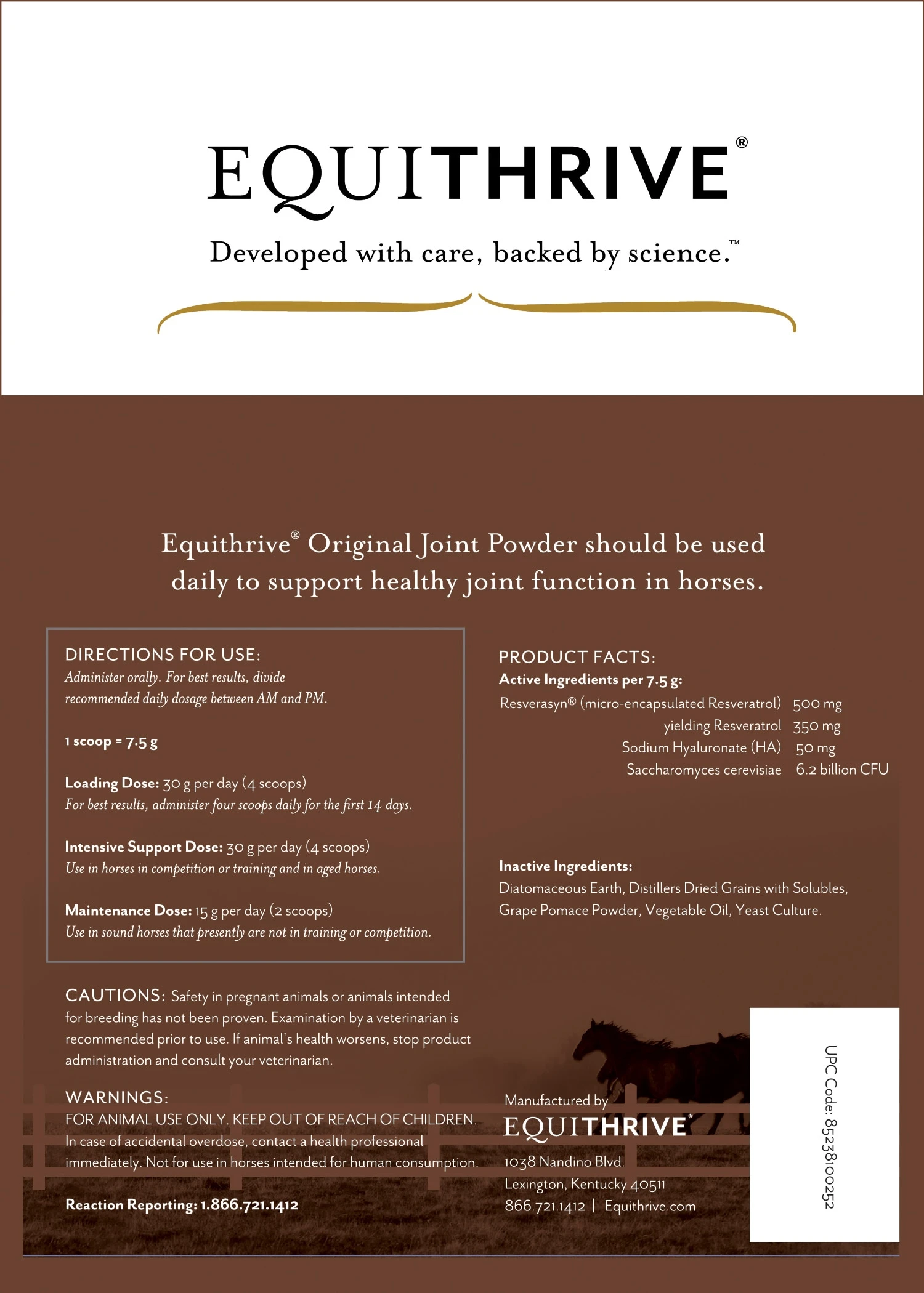 Equithrive® Joint is a unique resveratrol-based formula that supports healthy equine joint function during aging, training, and competition. Equithrive Joint has undergone extensive scientific testing at leading equine research institutions.