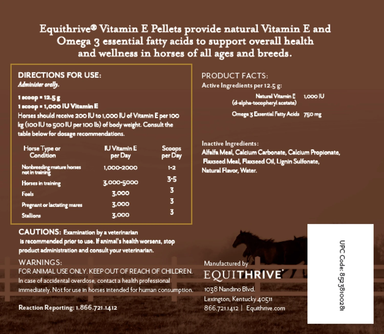 Developed with care and backed by science, Equithrive® Vitamin E Pellets are designed to support your horse’s overall health and wellbeing with natural vitamin E and omega 3. Vitamin E is a natural antioxidant present in fresh forage but because horses can’t synthetize it, horses with restricted access to fresh forage can be lacking in vitamin E. This important antioxidant plays a key role in neutralizing free radicals and addressing oxidative stress, so it could be a smart choice to supplement your horse’s diet with vitamin E if he isn’t getting enough. Natural vitamin E, like that found in this product, has been shown to be more bioavailable than synthetic vitamin E, making this an extra smart choice. Additionally, a hearty 750 mg of omega 3 fatty acids are also included to support a normal response to inflammation and overall wellness. Plus, you’ll love the convenient, mess-free pellets. Like all Equithrive products, this product has undergone rigorous scientific testing at leading research institutions to demonstrate their safety and effectiveness, so you can feel great about choosing it to support your horse.
