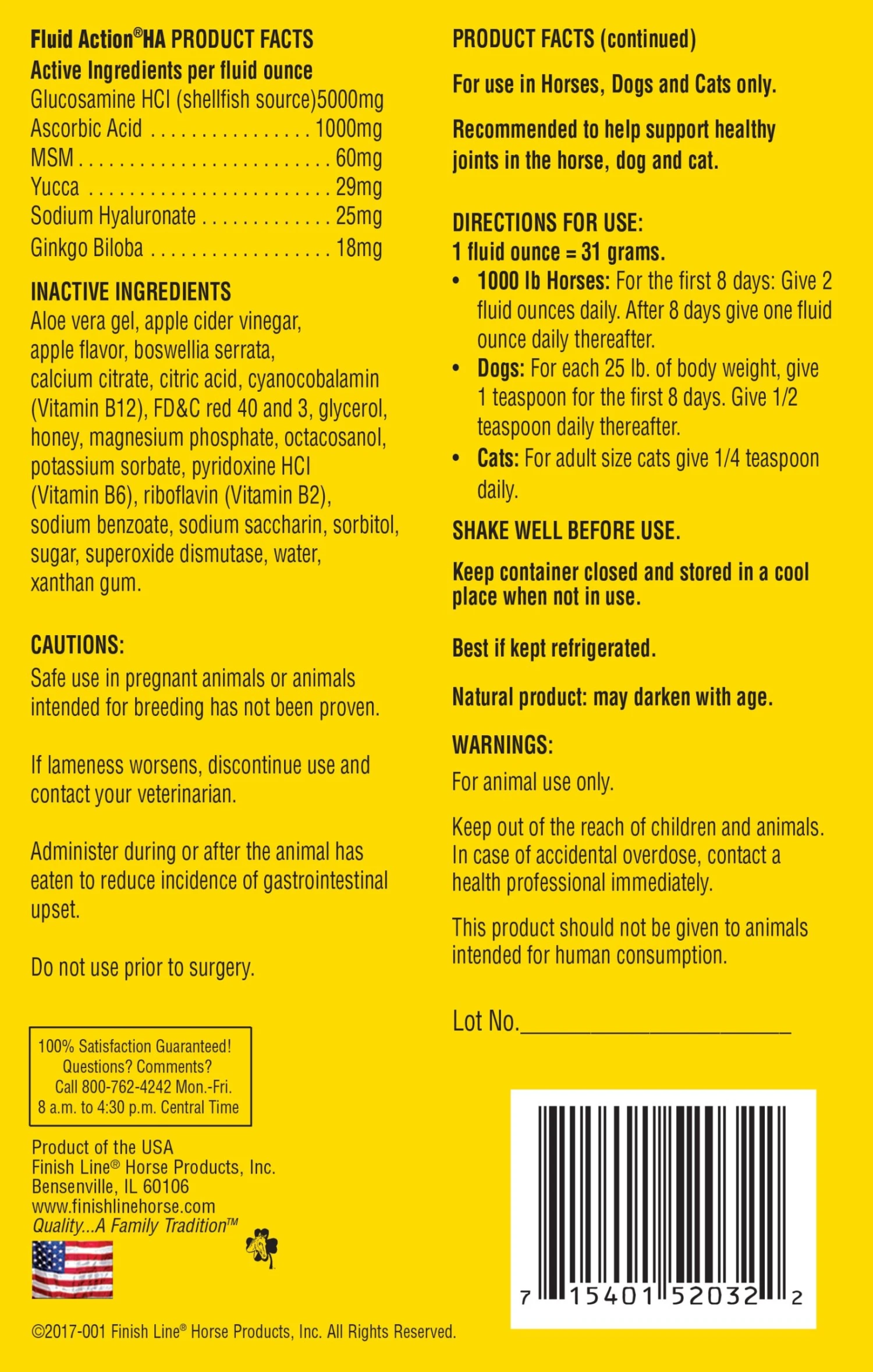 - Provides 25 mg of HA per fluid ounce to promote healthy joint function