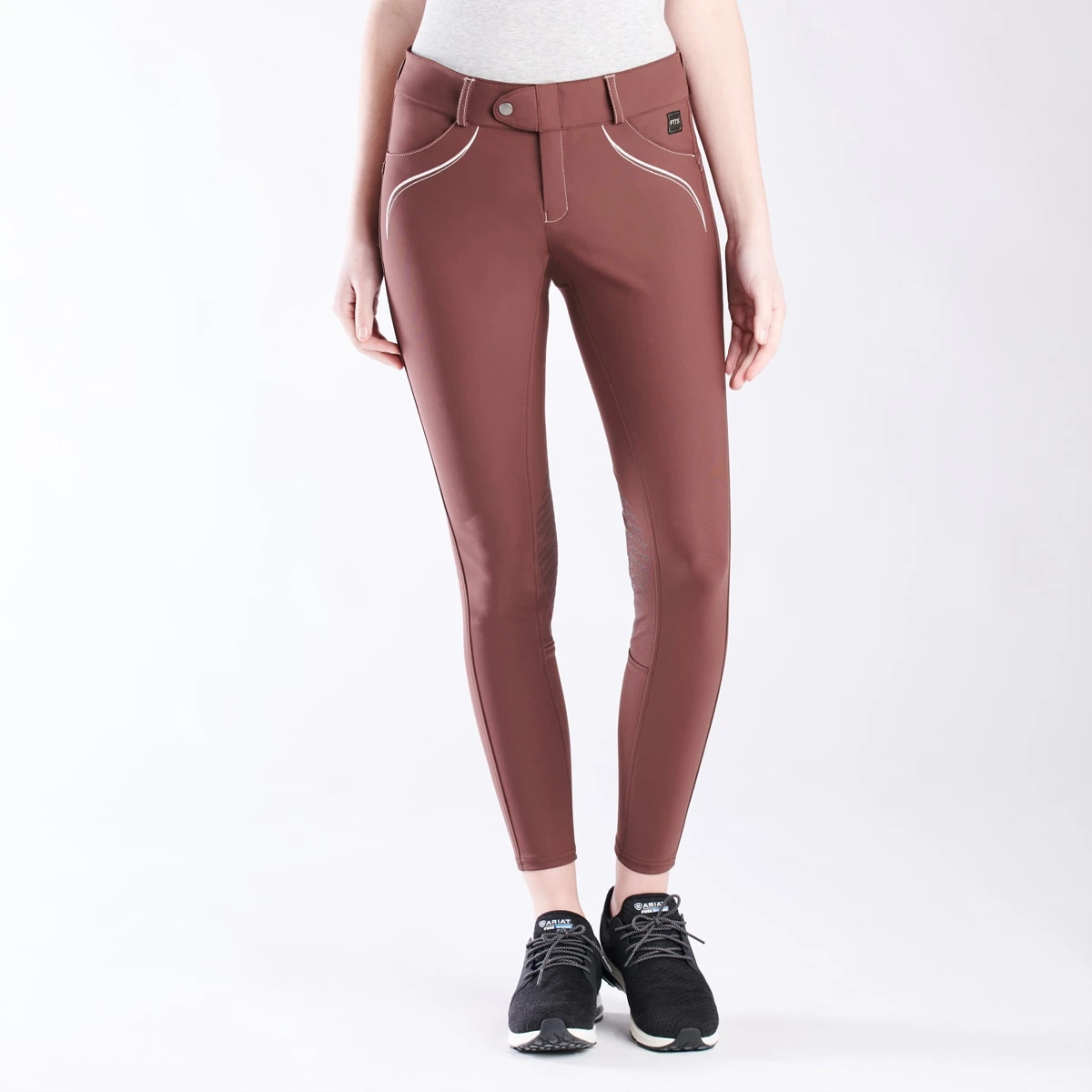 The Fits Abbey Knee Patch Breech is made of 4-way stretch silky-soft 82% Nylon,18% Spandex fabric. These flattering breeches feature flattering embroidery at the hi…