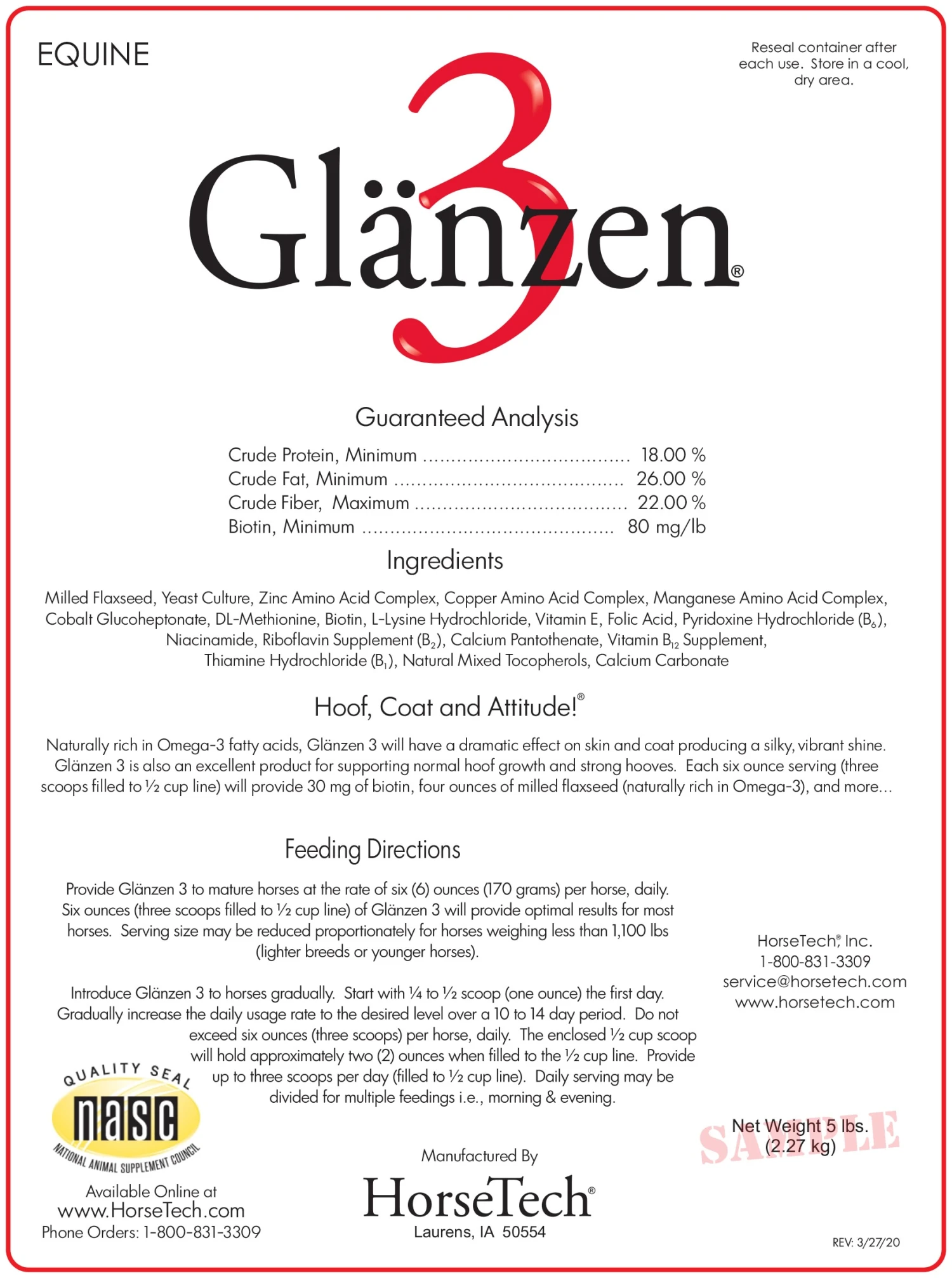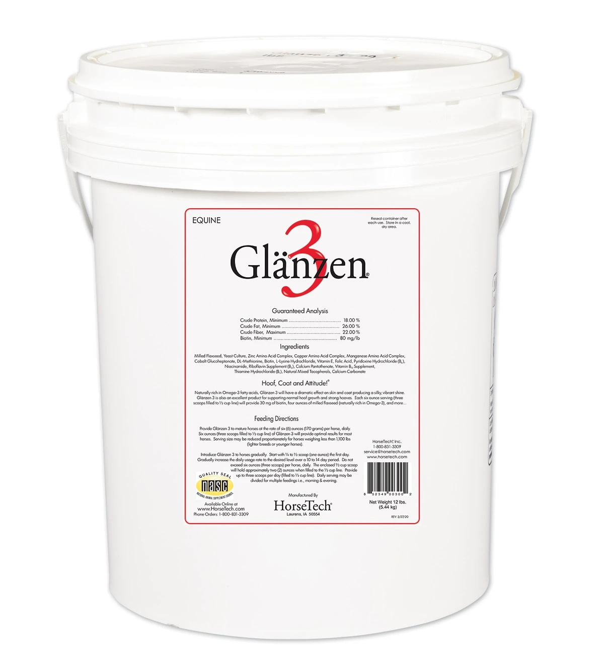 - 30 mg of biotin for strong hooves & omega 3 fatty acids for skin & coat health