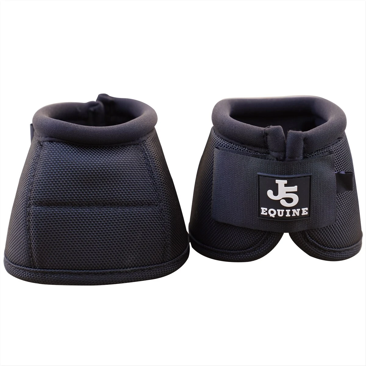 J5 Equine's Premium Bells Boots feature ultra-durable nylon as the outer cover and binding at the bottom of the stitching and boot. The boots cover the back of the hoof to the grou…