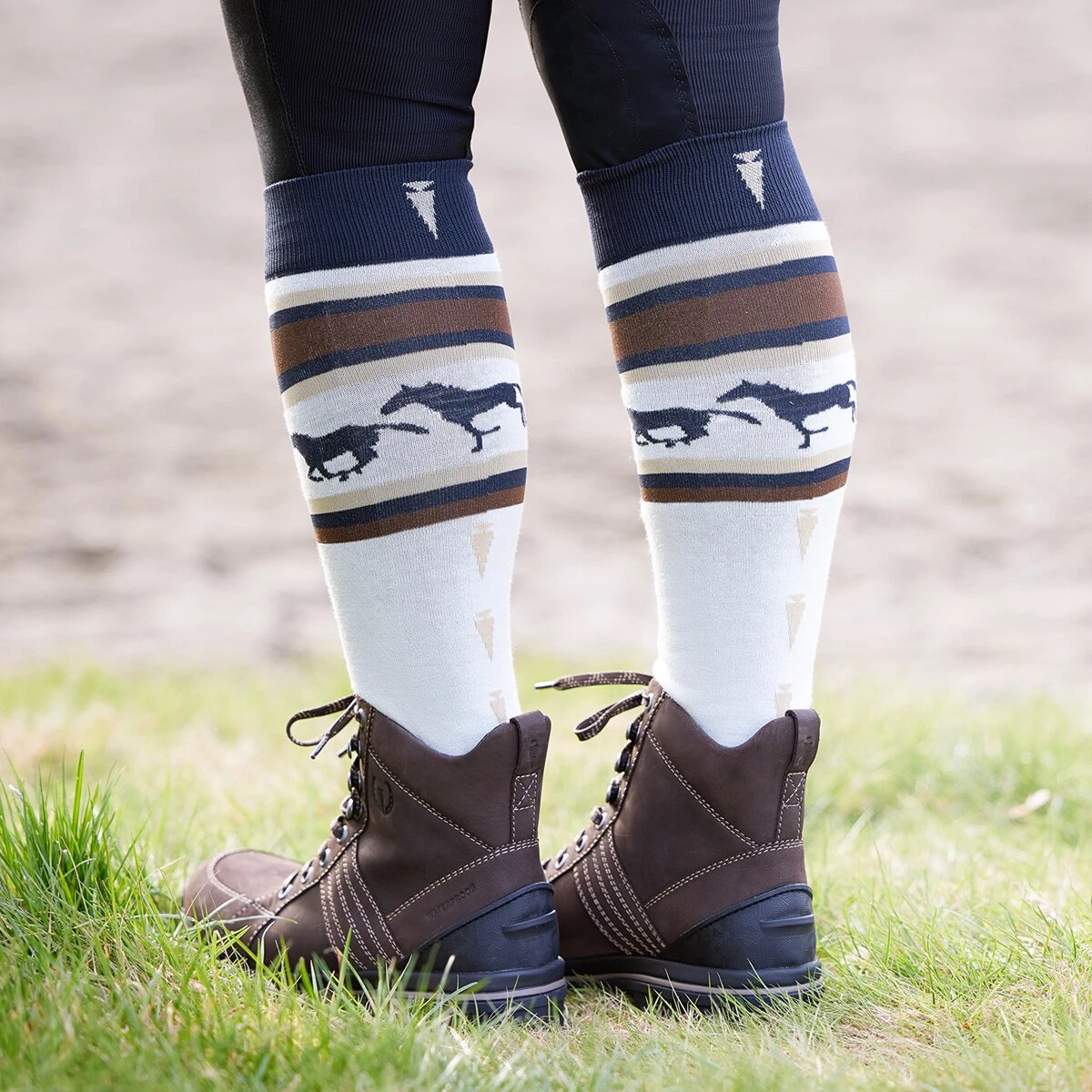 Equitation tips and toasty toes! Ride better, ride warmer with lightweight, breathable wool-blend socks perfect for tall boots and for peeking out below pants’ hems with a me…
