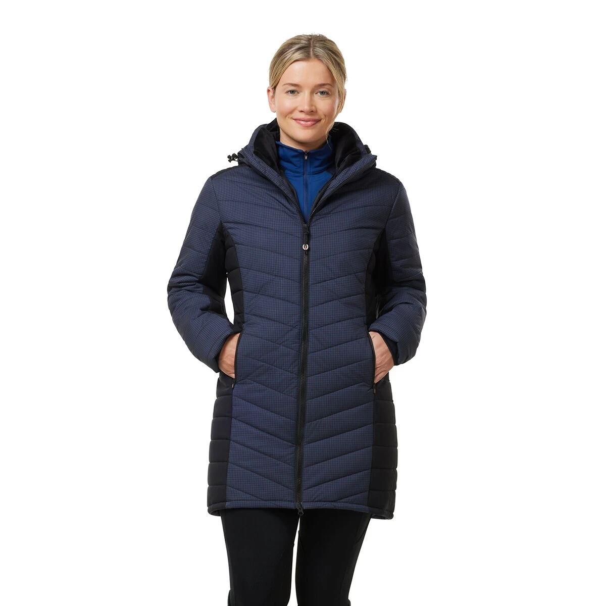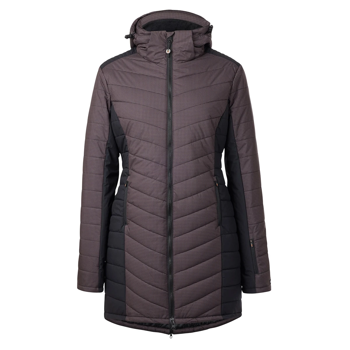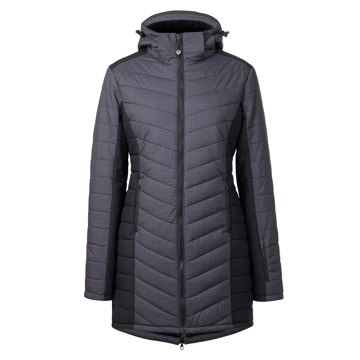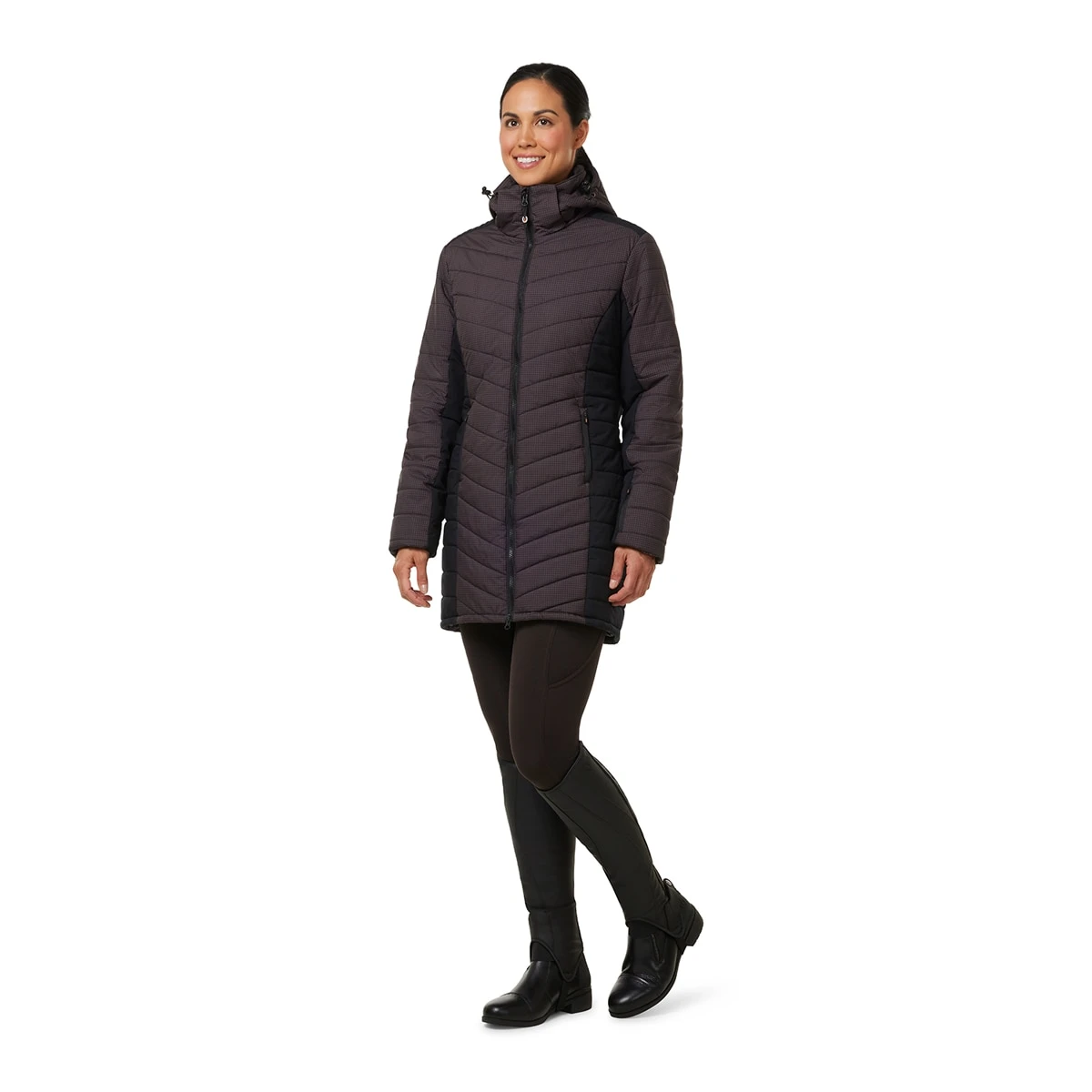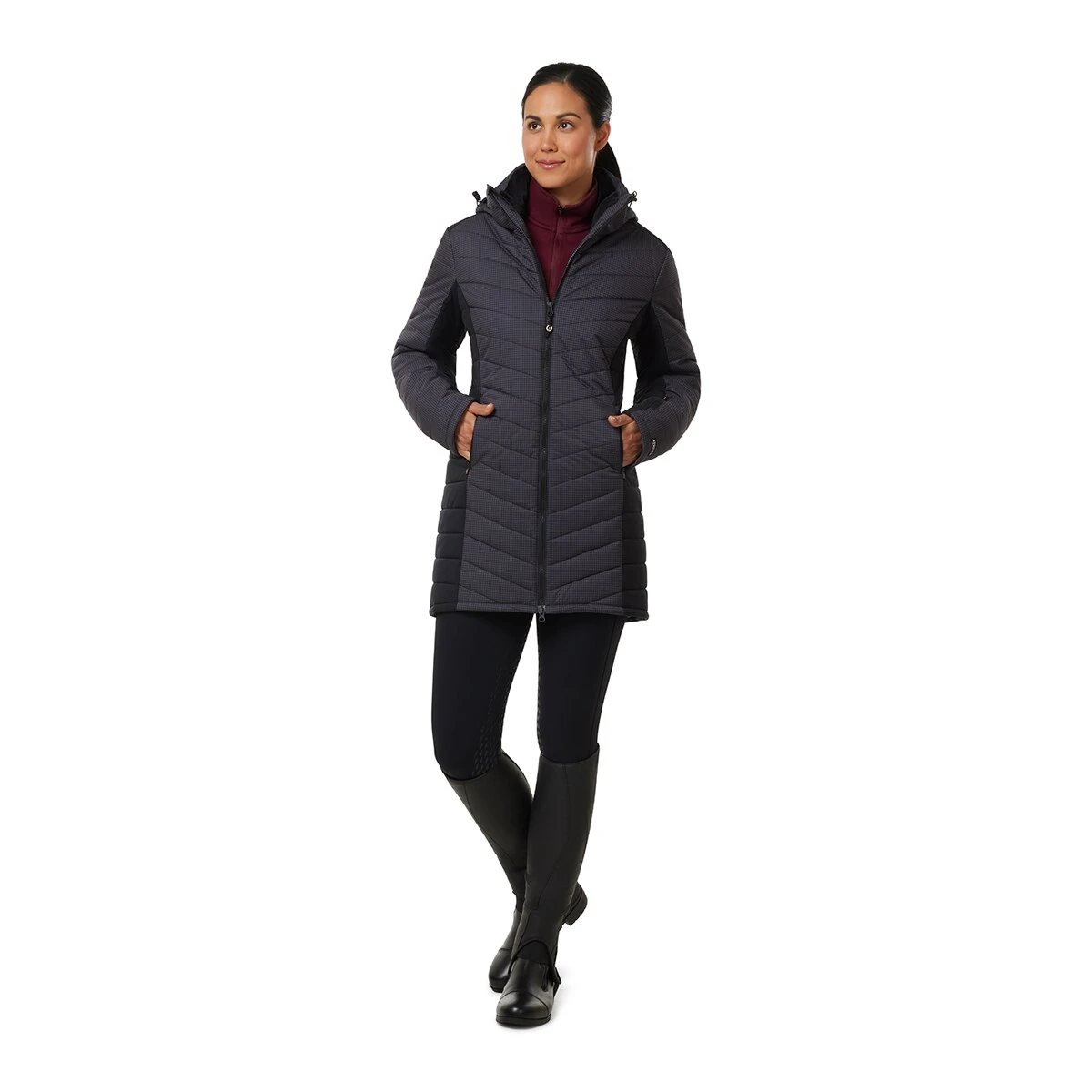Canter through the coldest days in a seriously warm coat made for riding. Updated with stylish mini houndstooth, the strategic design and a quilted chevron pattern combine for a sl…