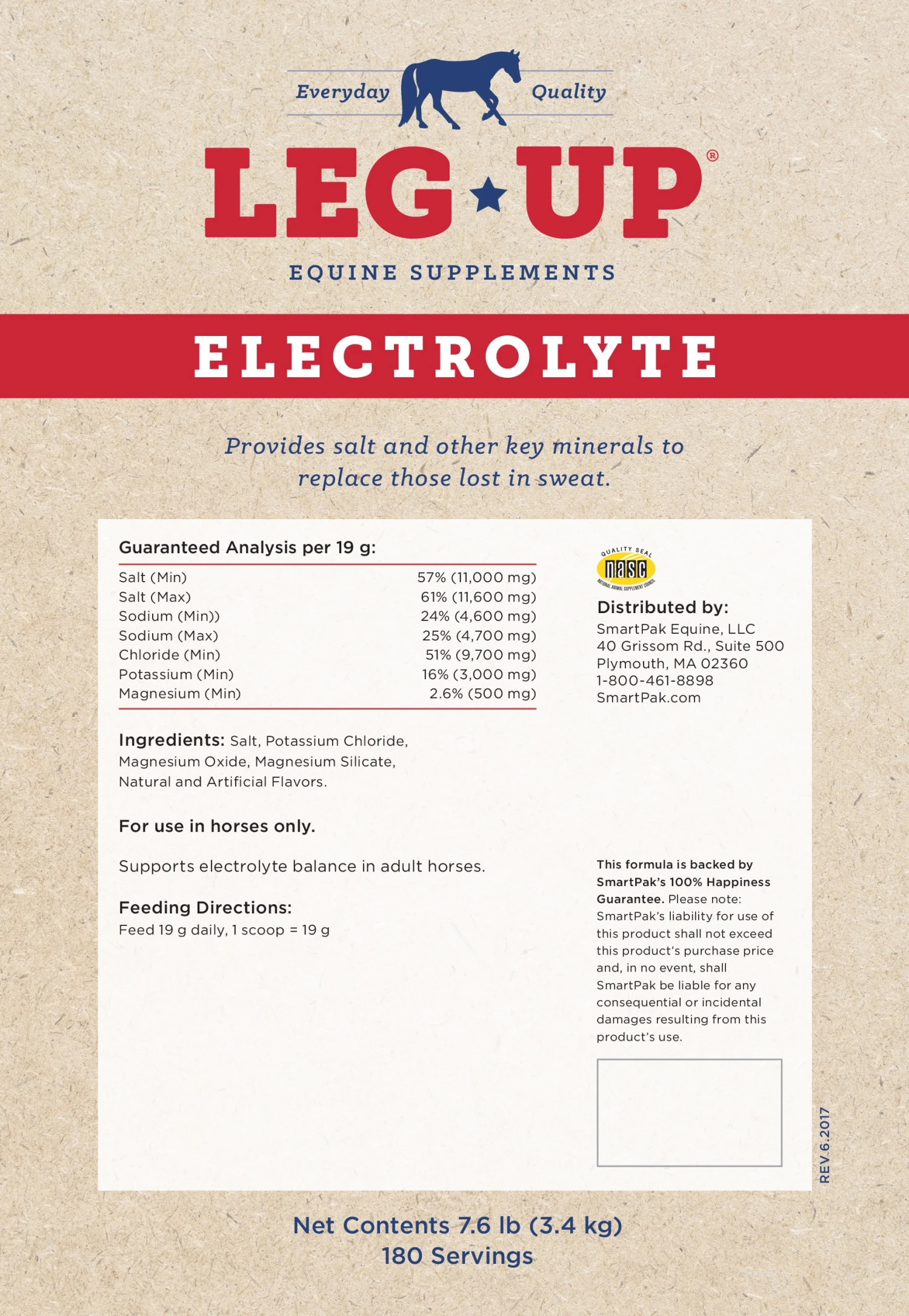 When your horse sweats, he loses salt and other key minerals that are essential to nerve and muscle function. Leg Up Electrolyte Powder provides key electrolyte minerals in a cherry flavored form that even picky eaters will love. This formula includes 11,000 mg of salt, 500 mg of magnesium, and 3,000 mg of potassium to help replenish what your horse loses in sweat and encourage normal hydration.