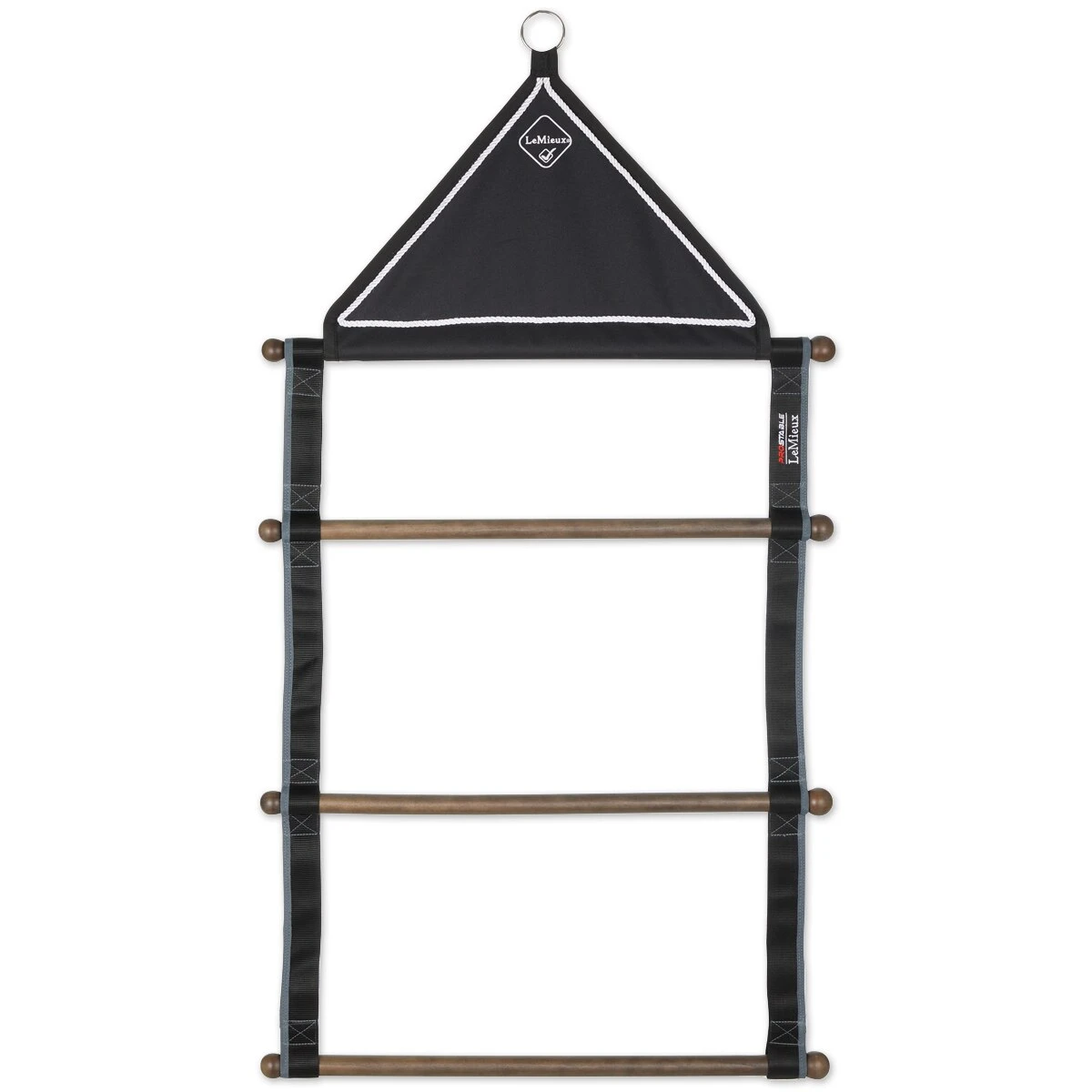 Rug hanging rack with quality wooden struts. Store your rugs, saddle pads, and accessories easily on one stylish rack. Strong metal loop at the top for easy hanging. Perfect to tak…