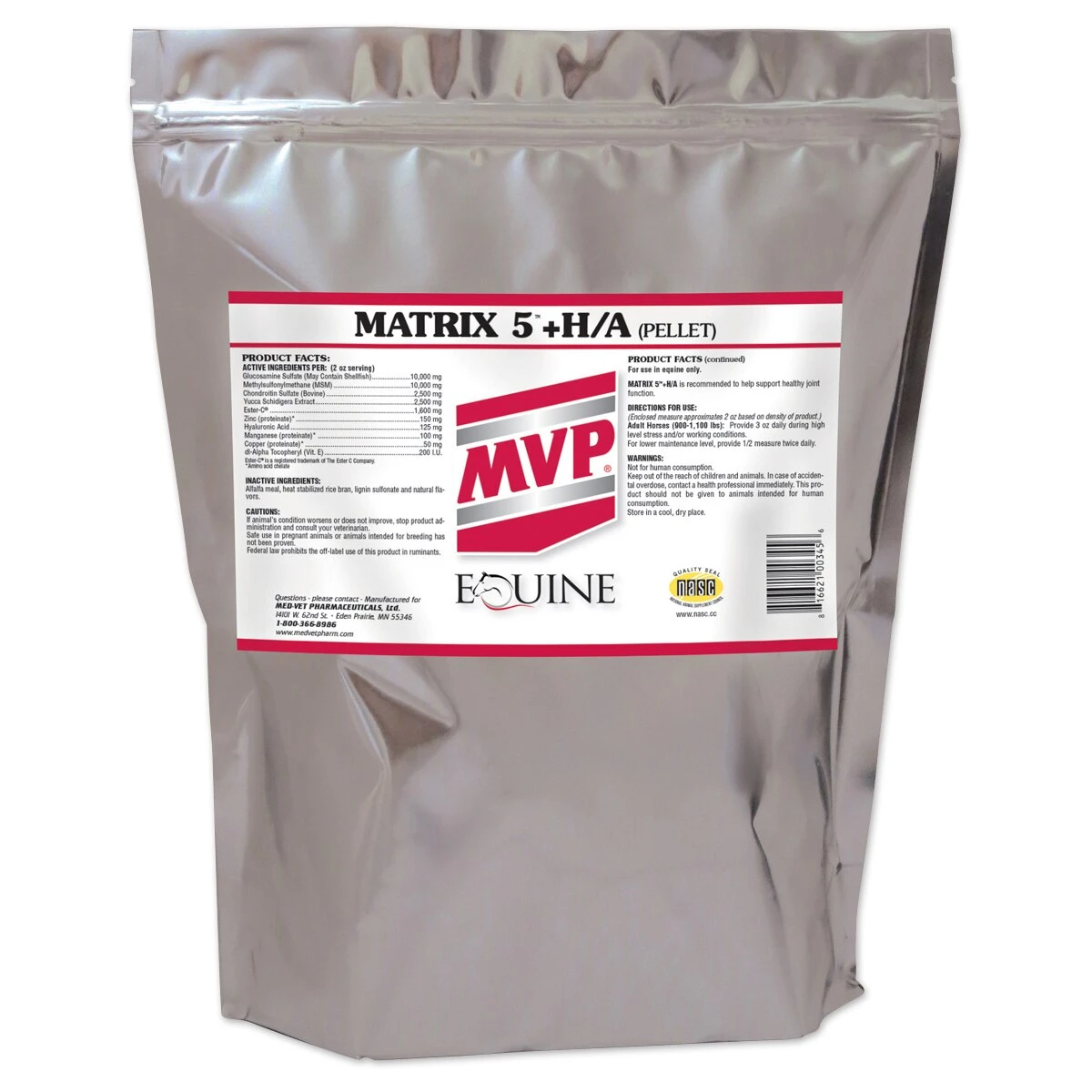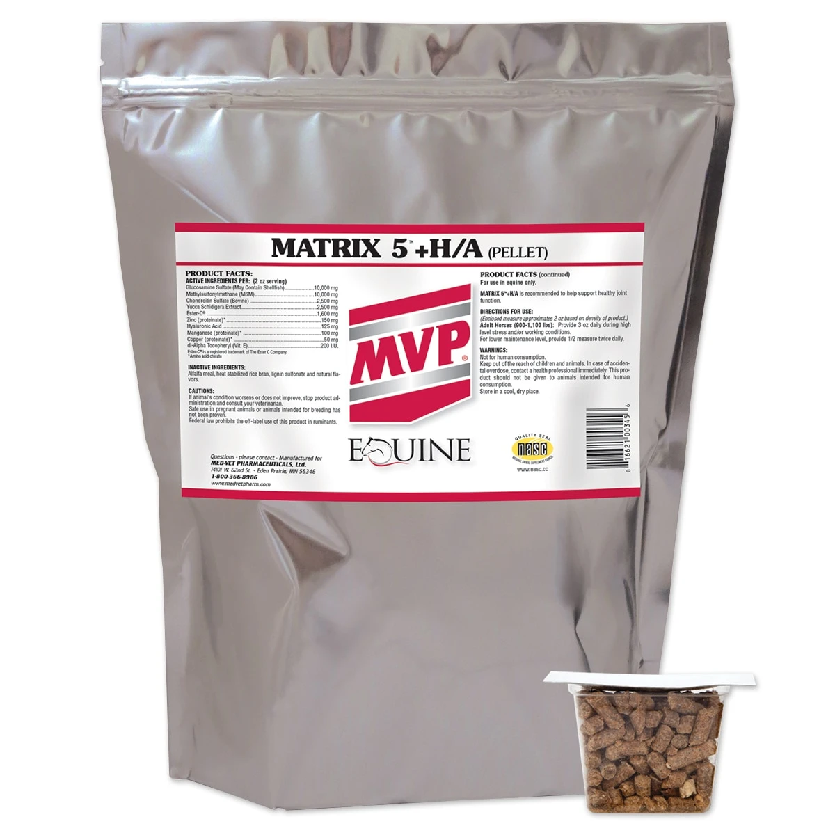 Matrix 5 HA is a high-level horse joint supplement in a pellet form! It contains 10,000 mg of glucosamine sulfate, 2,500 mg of chondroitin sulfate, 125 mg of hyaluronic acid, 10,000 mg of MSM, 2,500 mg of yucca, and 1,600 mg of Ester-C®.