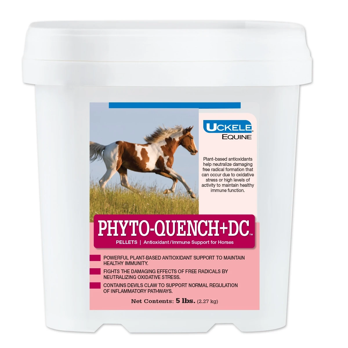 Antioxidant support straight from the plant, Phyto-Quench offers a variety of bioflavonoids and phenolics to horses in a tasty pellet. Ideal for horses who do not have access to fresh pasture, consistently traveling, lives in a busy boarding facility, or for individuals that need a boost of immunity. Unlike other supplements, Phyto-Quench focuses on using antioxidant rich ingredients derived from plants such as hesperidin, quercitrin, rutin, tangeritin, turmeric, grape seed, and ginko biloba. Both the bioflavonoids and phenolic work synergistically to permeate your horse’s tissue to help fight oxidative stress. In addition, devil’s claw and alpha-lipoic acid are added to help support a healthy inflammatory response and a normal detoxification process in the liver. Phyto-Quench is a great addition to support your horse’s overall wellness by providing phytonutrient rich ingredients to promote vascular and tissue integrity.