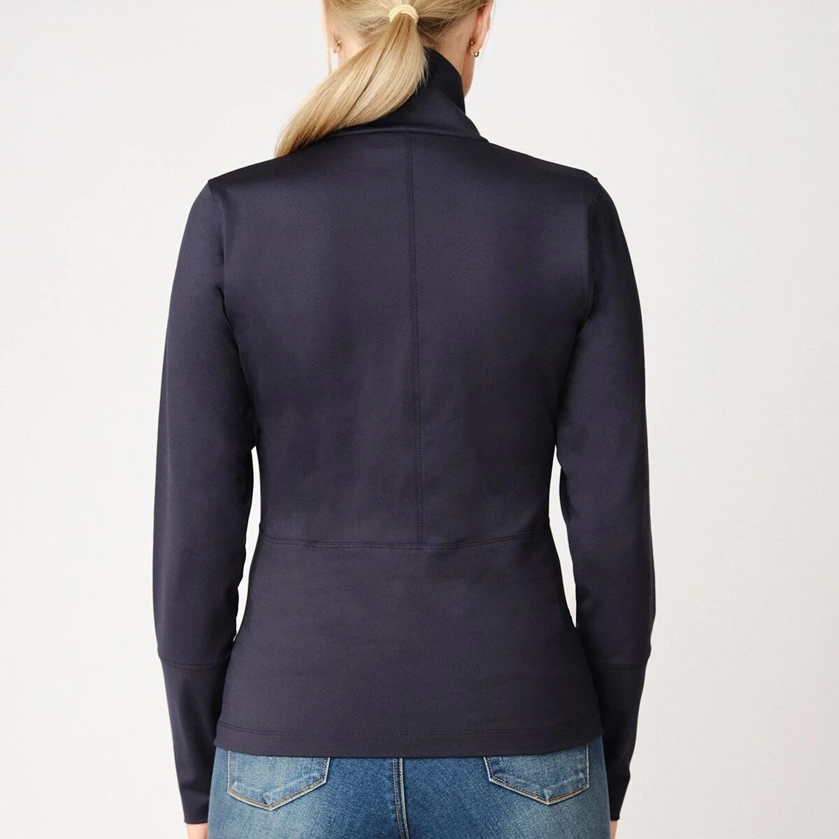 Zip-through mid layer sweater in stretchy jersey. The slim fit and soft material, with a slightly peached inside, give a comfortable feel to this versatile zip sweater with stand-u…
