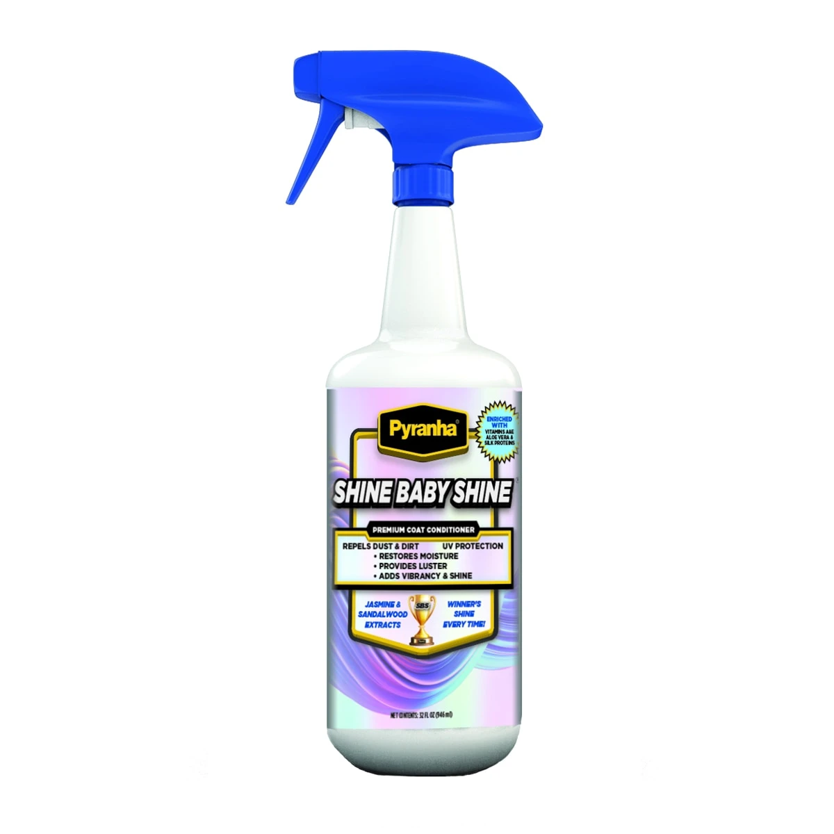 Pyranha®'s Shine Baby Shine® is a coat conditioner that leaves a show ring shine every time! Shine Baby Shine has been formulated to provide shine, luster and protection fo…