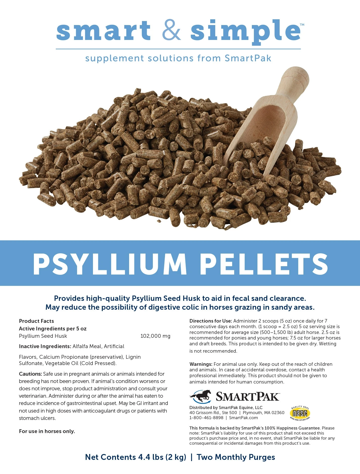 Horses grazing in sandy areas are at increased risk for experiencing sand colic. Smart & Simple Psyllium Pellets for Horses provides high-quality psyllium seed husk to aid in fecal sand clearance. Providing psyllium may reduce the possibility of digestive colic in horses grazing in sandy areas. Your horse will love these apple-banana flavored pellets!