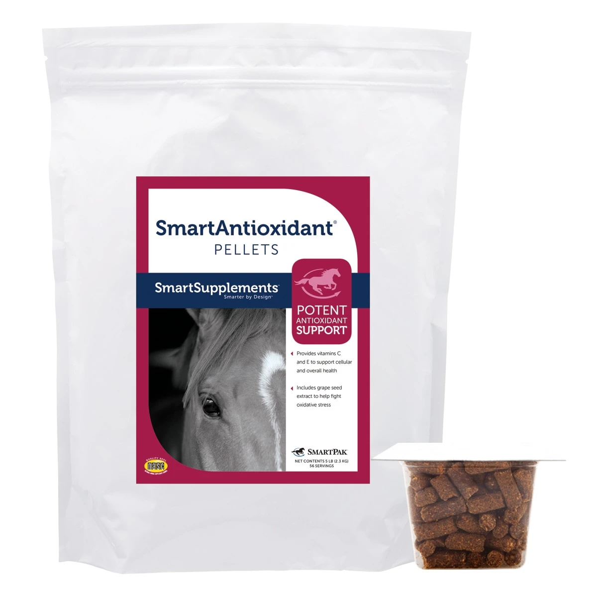 Antioxidants may help your horse’s body fight the damaging effects of free radicals and oxidative stress. SmartAntioxidant Pellets are a potent, cost-effective antioxidant formula containing vitamin C, vitamin E, grape seed extract, super oxide dismutase and citrus bioflavonoids. SmartAntioxidant Pellets provide excellent support for both senior and performance horses.