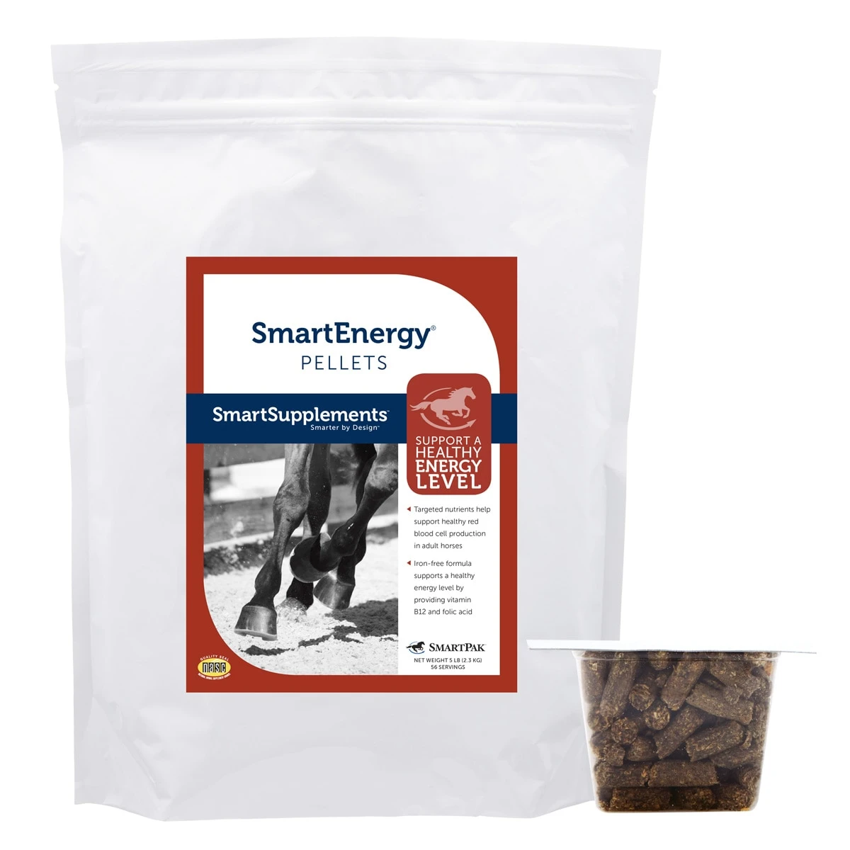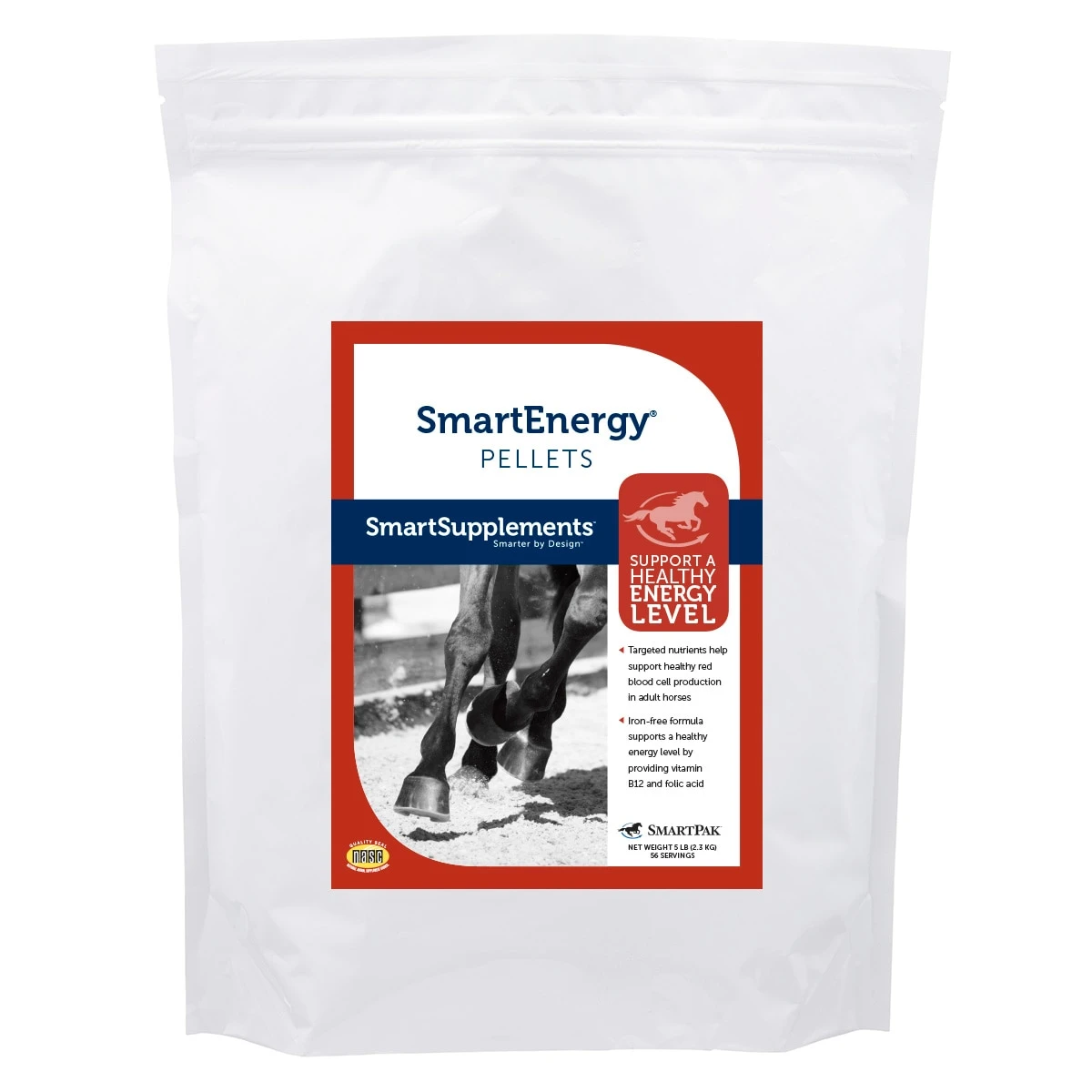 SmartEnergy is ideal for horses that lack stamina, are lethargic, or are easily fatigued. While many other energy supplements are focused on providing iron, feeding extra iron has not been shown to improve red blood cell count or athletic ability, and veterinarians agree that iron is rarely deficient in a horse’s diet. SmartEnergy offers a smarter solution by providing a range of nutritional building blocks required for the production of healthy red blood cells, without added iron.