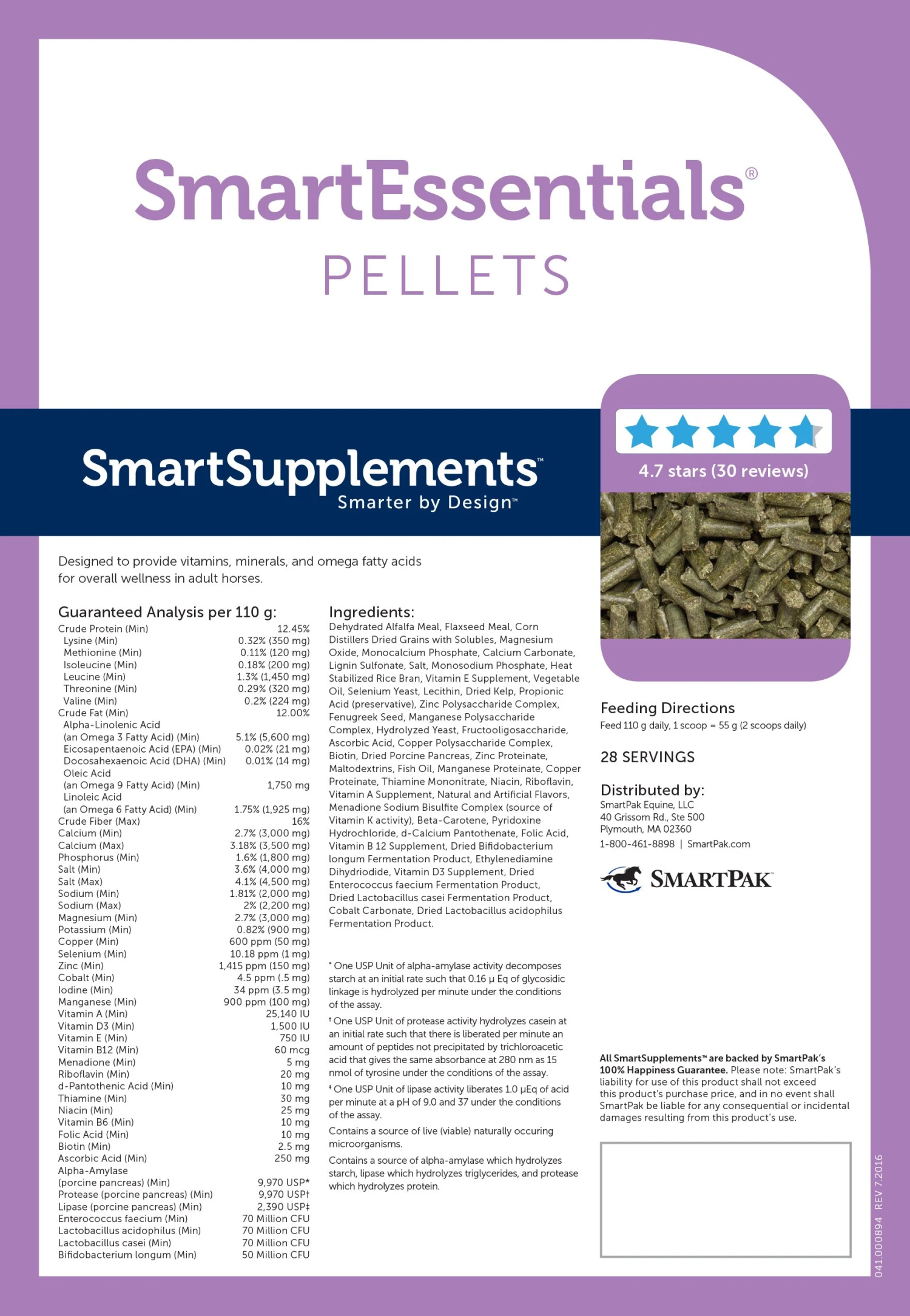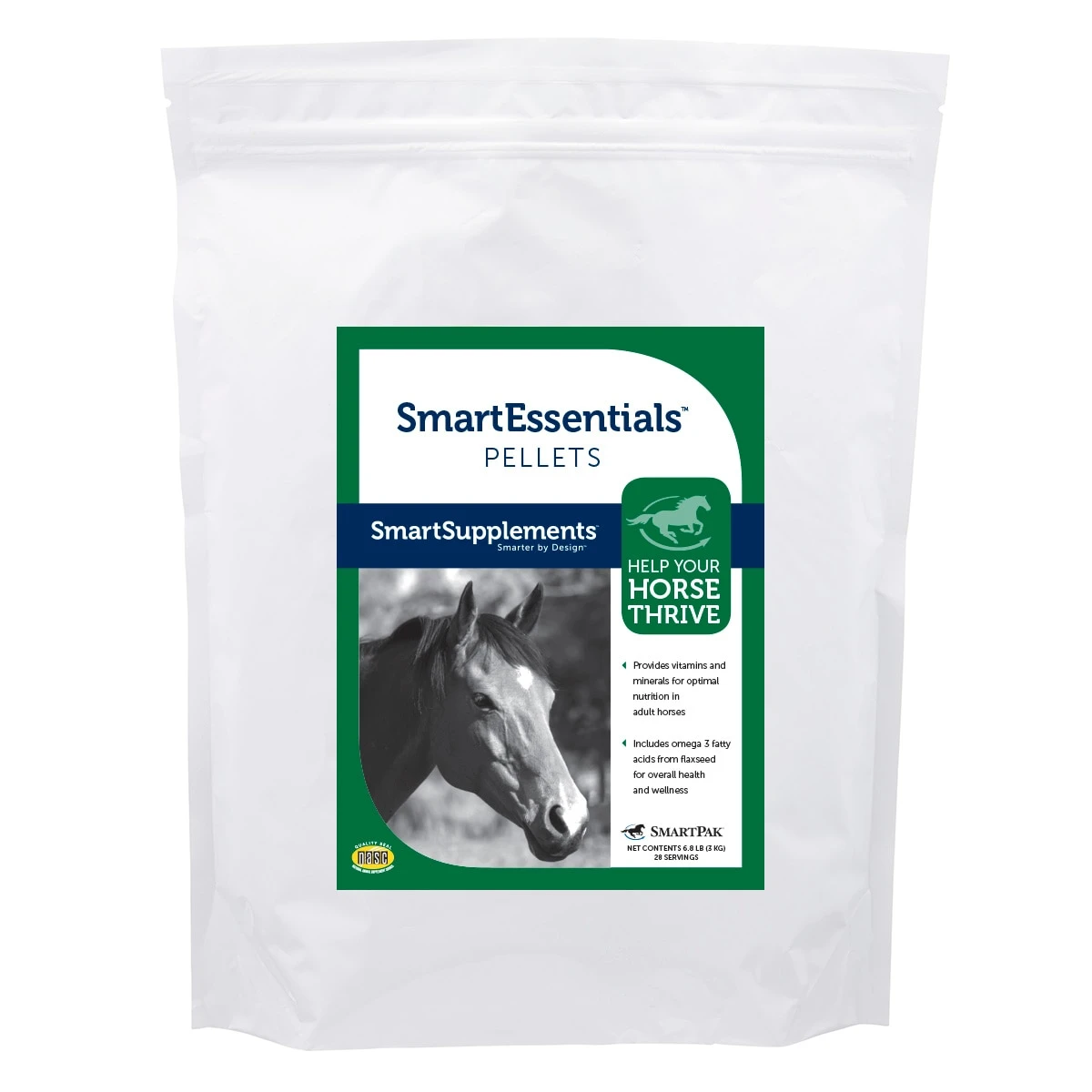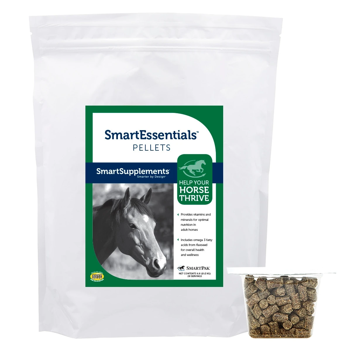 SmartEssentials Pellets are designed to help your horse get the nutrients he needs to look and feel his best! This formula includes the active ingredients of SmartVite Thrive Pellets, which provide the right balance of vitamins, minerals, and amino acids to help meet your horse’s nutrient requirements for optimal health. In addition, it contains omega 3 fatty acids from flaxseed and fish oil to help promote overall wellness.