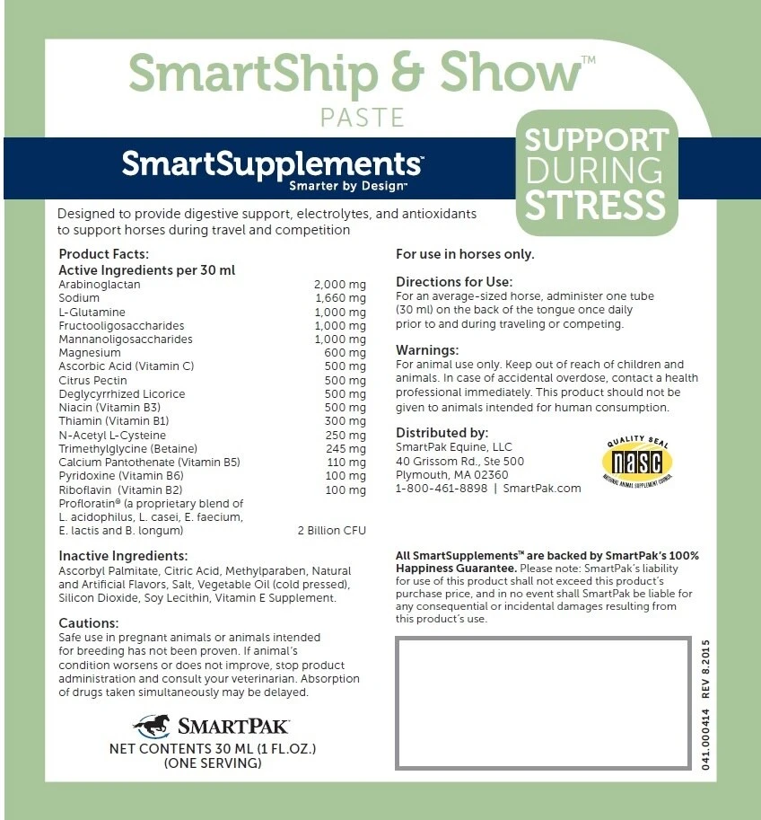 When you’re asking the most from your horse, SmartShip & Show Paste will help ensure you’re giving him the support he needs for optimal well-being and performance! We recommend administering SmartShip & Show Paste once daily prior to and during travel or other stressful events.