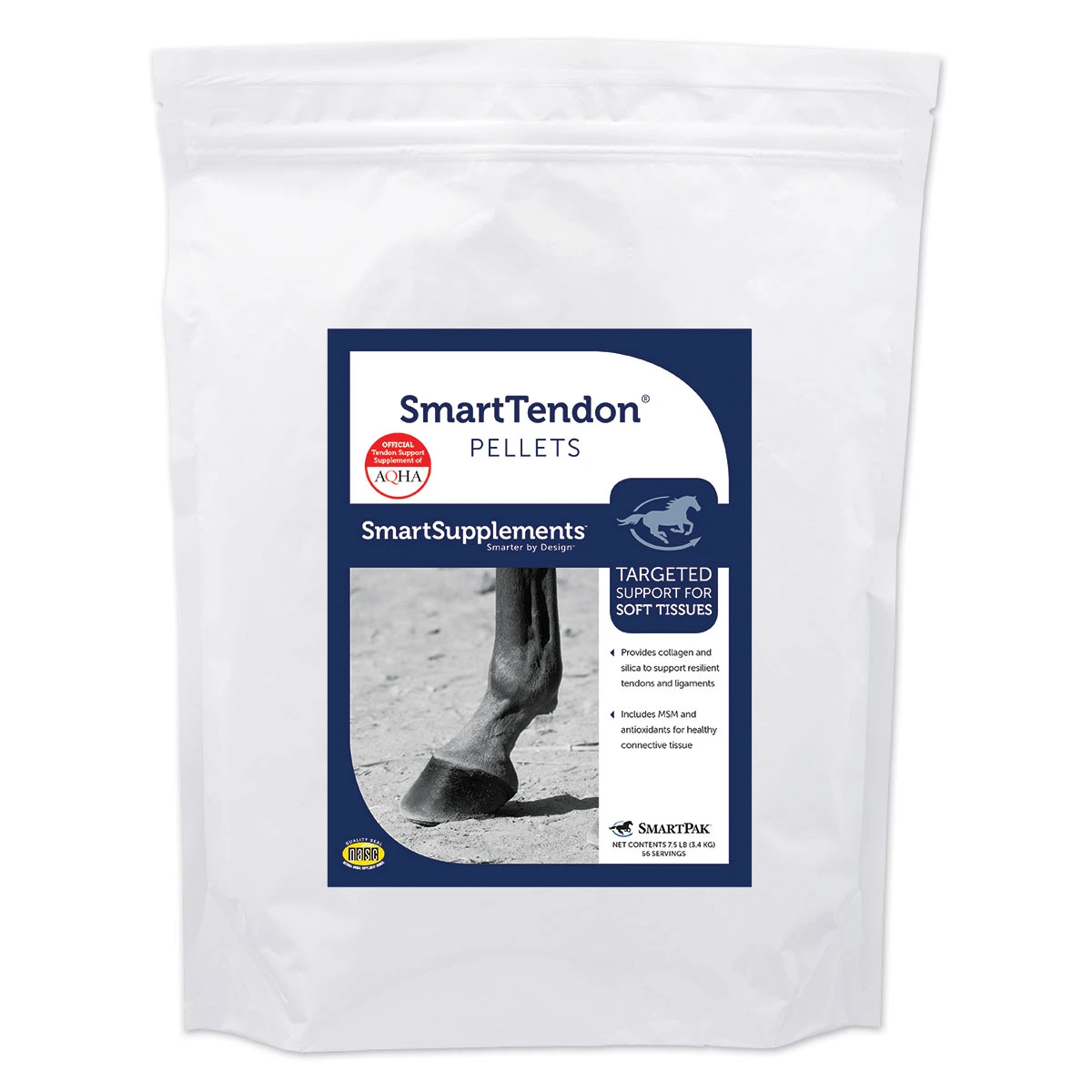SmartTendon Pellets provide targeted support for tendons and ligaments to help keep your horse going strong for years to come! This cutting-edge formula contains carefully selected key ingredients, including 4,000 mg of hydrolyzed collagen, to help provide your horseโs body with what it needs for resilient tendons and ligaments. It also contains 300 mg of silica, a trace mineral thatโs vital for connective tissue health, but may not be found in adequate levels in many horsesโ diets. Additionally, it includes 2,500 mg of MSM, which has been shown to protect tissues against the damaging effects of exercise and stress. Lastly, SmartTendon Pellets provide the antioxidant vitamin C, which is also important in the production of connective tissue. This unique formula can be given alone or combined with your favorite joint supplement. SmartTendon Pellets are the ideal way to help maintain your performance horseโs soft tissue health or to support your horse in recovery.