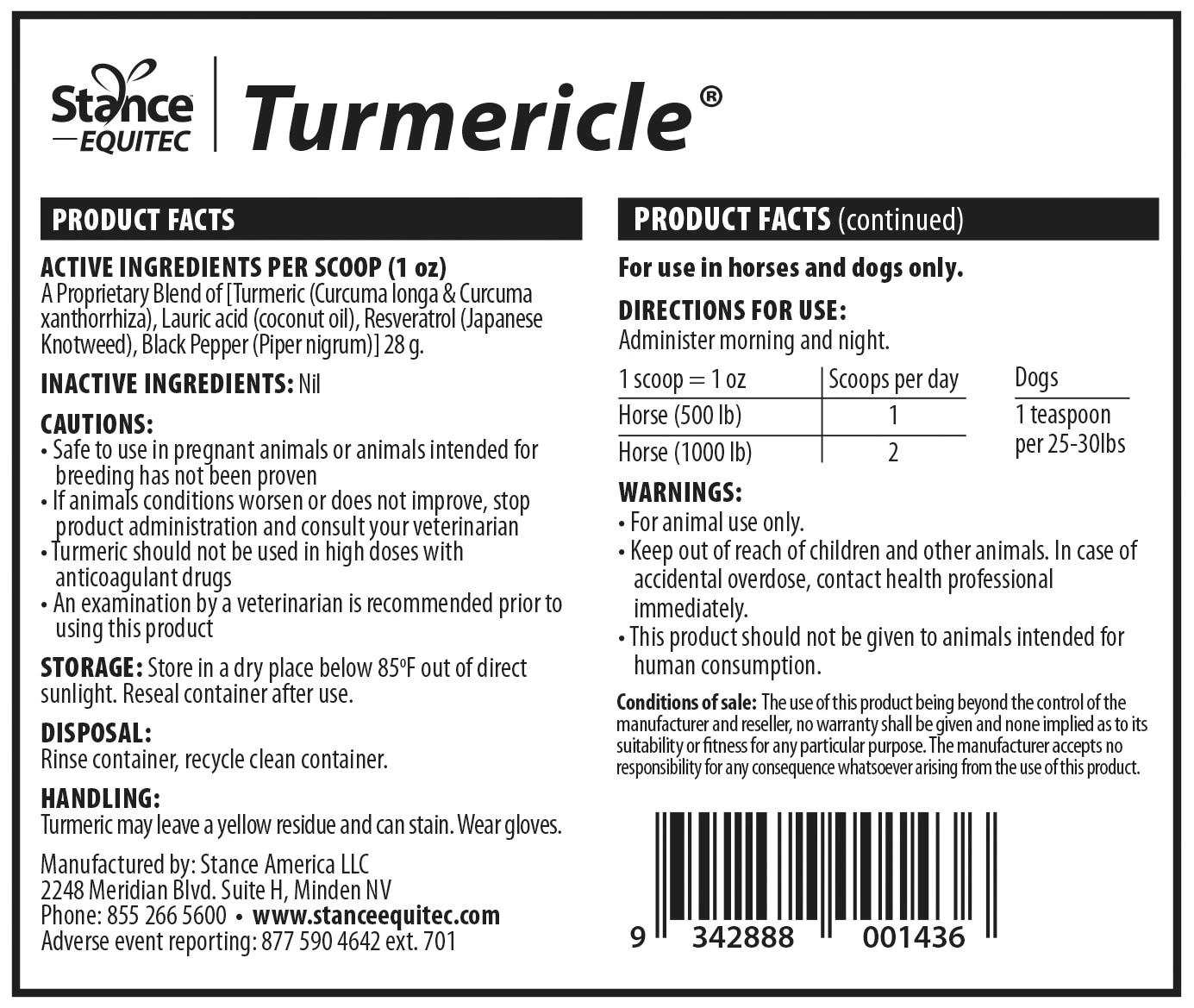 Turmericle® is a unique golden powder blend that combines all of the benefits of turmeric, coconut oil, resveratrol, and ground black pepper in a convenient and easy-to-use powdered form. The first ingredient, turmeric, is known for its powerful antioxidant properties, and may help your horse’s body neutralize free radicals before they damage healthy cells and cell membranes. In addition, it supports a normal inflammatory response and may help your horse stay comfortable. Next, this formula contains Power Stance®, which is Stance® Equine’s unique powdered coconut oil supplement. This key ingredient helps ensure the proper absorption of turmeric and supports your horse’s overall health and well-being. For additional antioxidant support, this formula provides resveratrol. Finally, ground black pepper is included to support the absorption of turmeric.