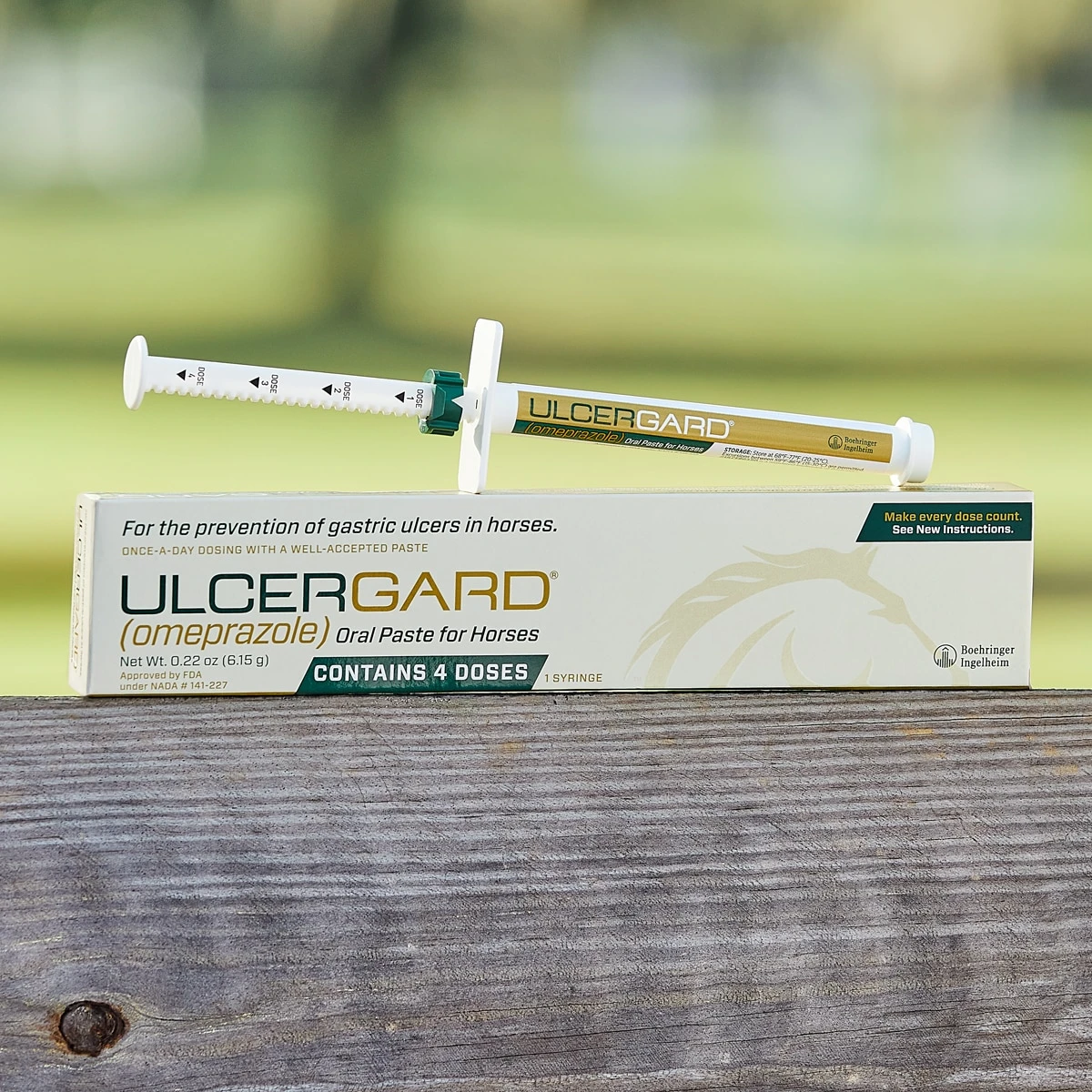Actively prevent stomach ulcers and the pain and discomfort that often accompanies them by giving your horse ULCERGARD during times of increased stress or exercise. ULCERGARD is the first and only proven non-prescription preventative for Equine Gastric Ulcer Syndrome. No other product is FDA-approved to prevent stomach ulcers in horses. Each tube of ULCERGARD contains four preventative doses for horses weighing between 600 and 1,200 pounds. Two doses are recommended for horses weighing more than 1,200 pounds.