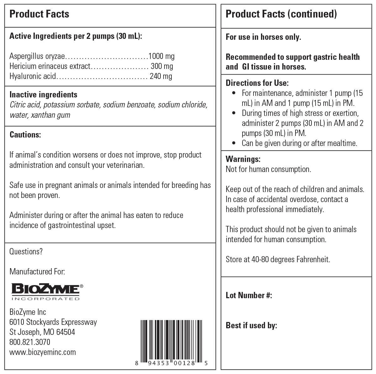 Vitalize® Alimend® powers your horse’s gastric health without suppressing normal acid production by combining the power of three innovative key ingredients. First, it utilizes MHB3® Hyaluronan, which is patented and clinically shown to support gastric health and normal GI tissue in horses. Plus, it provides AO-Biotics® Amaferm®, BioZyme®’s research-backed precision prebiotic that is designed to help normalize gastric and immune system reactions to stresses, and support proper nutrient absorption to maintain overall digestive health. Additional support comes in the form of Lion’s Mane, a mushroom extract that is rich in beta-glucans which help normalize the rate at which food moves through the GI tract, thereby moderating the release of sugar into the bloodstream and reducing the digestive upset that can occur when too much sugar reaches the hindgut too quickly. Previously only available through veterinarians, this liquid gastric supplement is now available for sale directly to horse owners and riders like you through SmartPak.